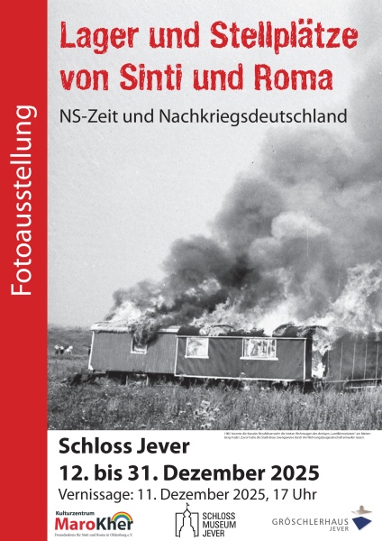 Hiermit laden wir Sie herzlich zur Fotoausstellung „Lager und Stellplätze von Sinti und Roma: NS- Zeit und Nachkriegsdeutschland“ und zur Vernissage am 11. Dezember 2025, 17 Uhr, im Schloss Jever (Steinsaal) ein.
